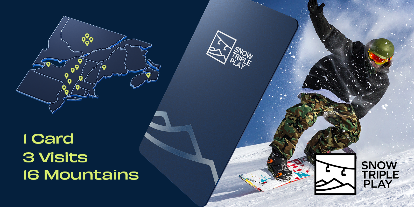 The Snow Triple Play is a new multi-mountain ski ticket product coming to the Northeast this season. Each Snow Triple Play comes loaded with a total of 3 uses that can be redeemed for Lift Tickets at any of our participating ski areas this winter season.